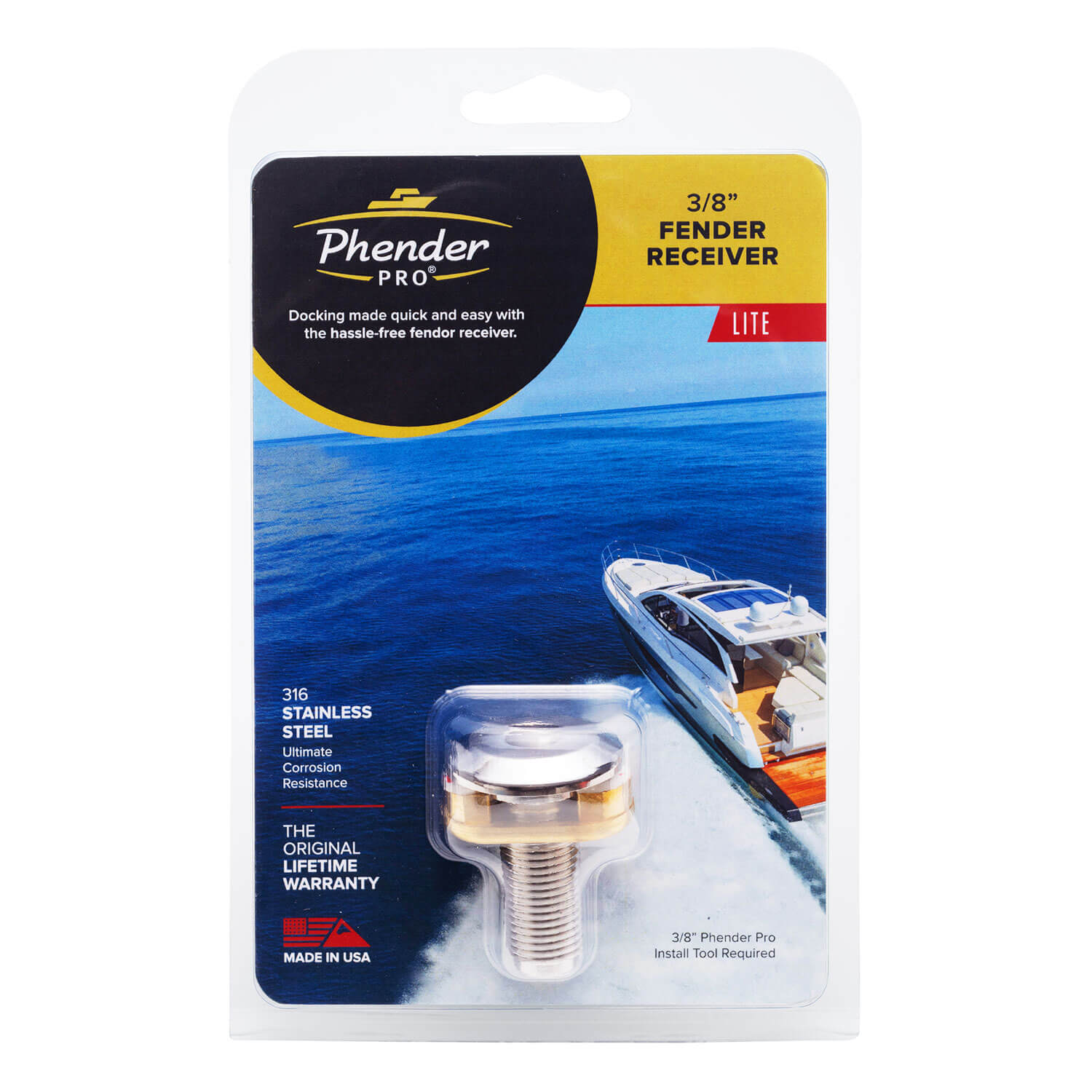 The PHENDER PRO® QUICK-RELEASE FENDER RECEIVER is expertly machined from stainless steel for maximum protection in fresh or saltwater, and its blind-drilled design and low profile head ensure no water can get into the hull.